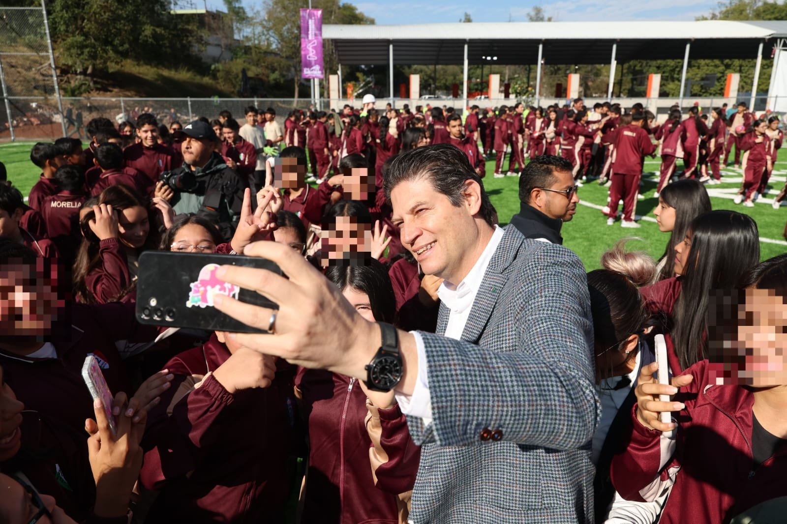 Morelia, Michoacán, 10 de diciembre de 2025.— El deporte es una de las principales actividades para construir la paz e impulsar a los jóvenes, refrendó el presidente municipal de Morelia, Alfonso Martínez Alcázar, al asistir a la inauguración de las canchas de Fútbol 7 en la Escuela Secundaria Federal Número 2 “Hermanos Flores Magón”.