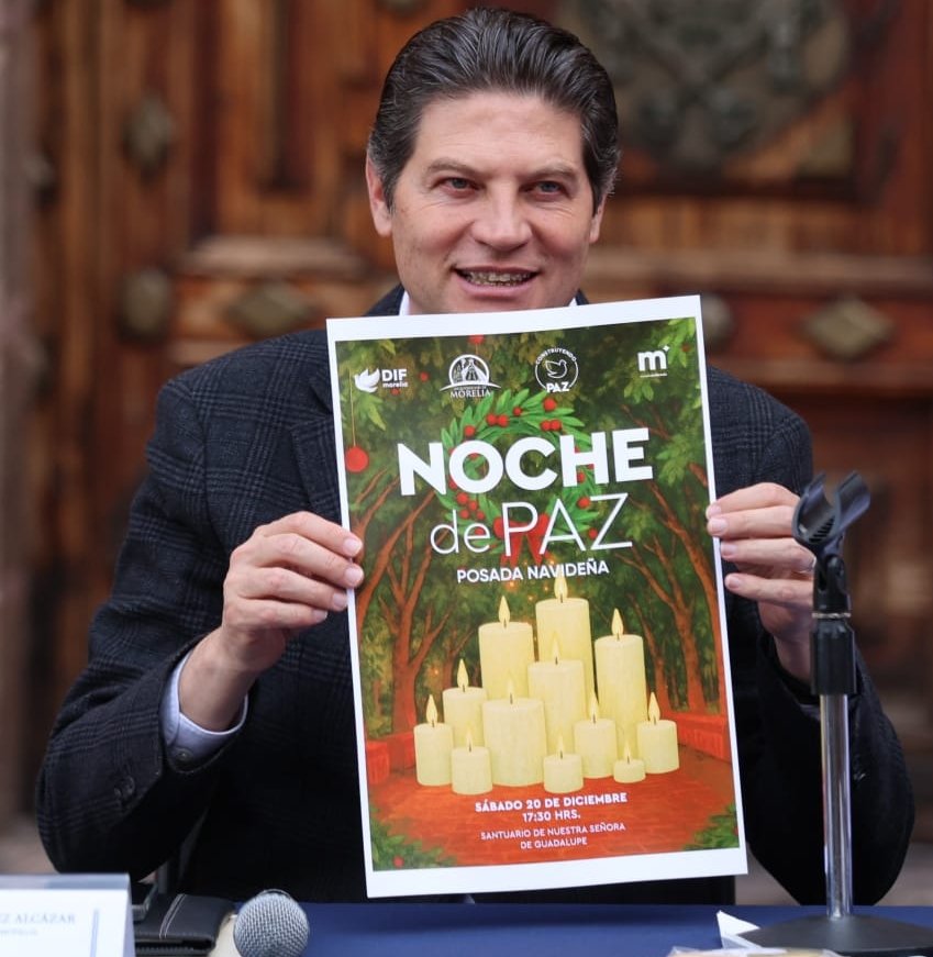 Morelia, Michoacán; 8 de diciembre de 2025.— El Presidente Municipal de Morelia, Alfonso Martínez Alcázar, acompañado del Arzobispo, Carlos Garfias Merlos, anunció la Cuarta edición de la Magno Posada Navideña “Noche de Paz”. El evento busca fortalecer las tradiciones, promover la convivencia familiar y resaltar la belleza del Centro Histórico.