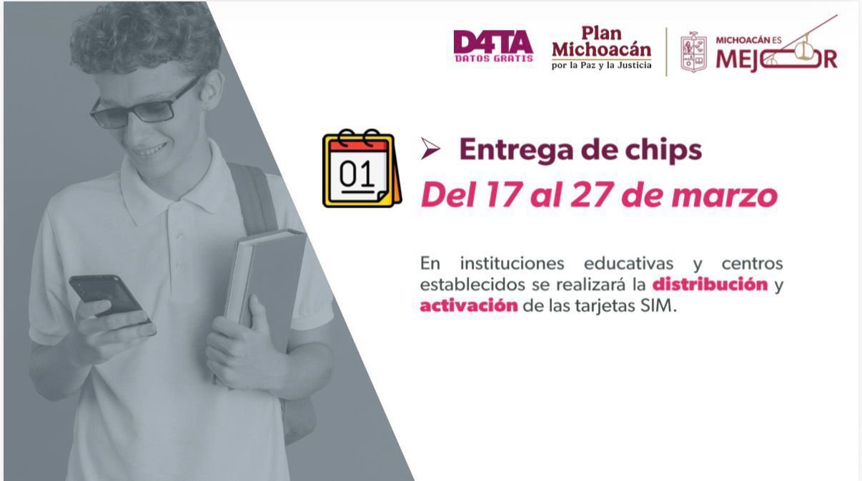 La titular del Instituto de Educación Media Superior y Superior del Estado de Michoacán (Iemsysem), Mariana Sosa Olmeda, explicó los requisitos para la asignación de los chips. Los estudiantes mayores de edad deberán entregar copia del INE y de la CURP. Los alumnos menores de edad entregarán su CURP, así como copia de la CURP e INE del padre, madre o tutor.