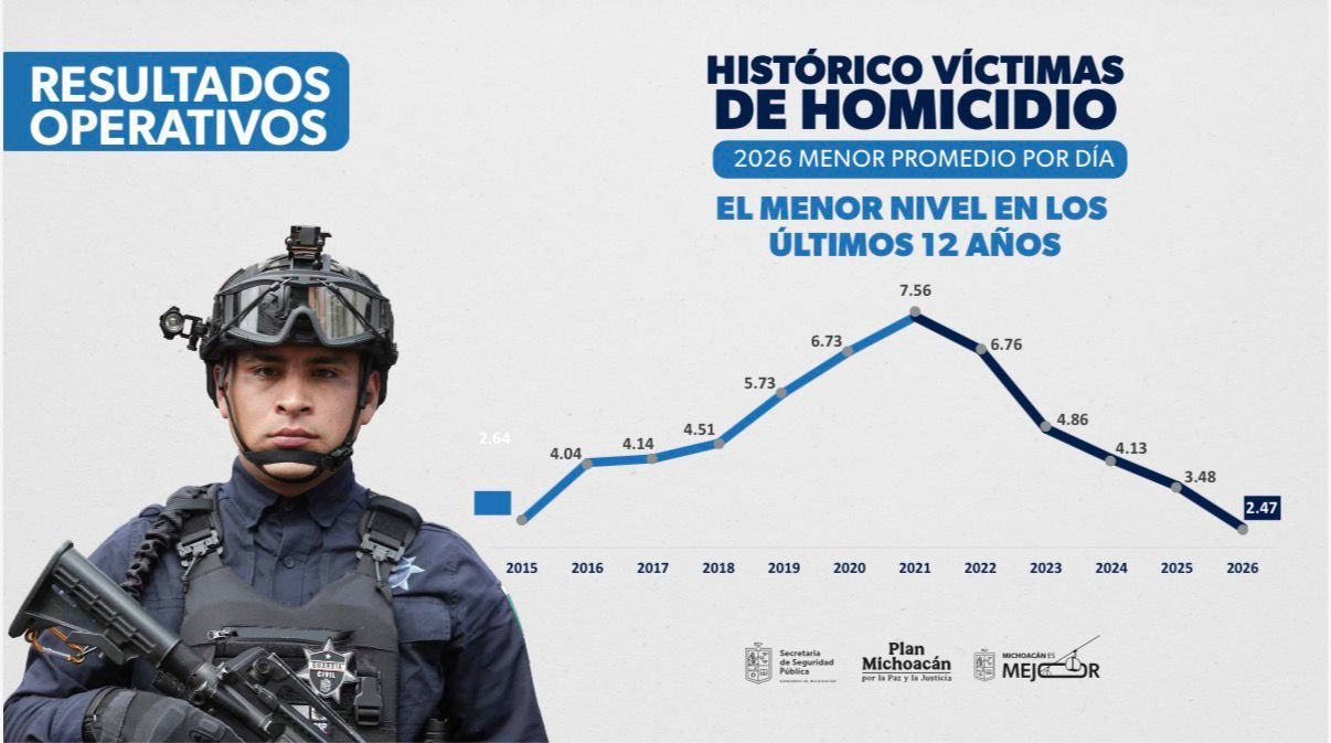 El secretario de Seguridad Pública precisó que el promedio diario de homicidios dolosos ha mostrado una tendencia a la baja en los últimos años: en 2022 fue de 6.76; en 2023 de 4.86; en 2024 de 4.13; y en 2025 de 3.48. Las cifras de 2026 representan una continuación de esta tendencia descendente, de acuerdo con los datos presentados por las autoridades estatales.