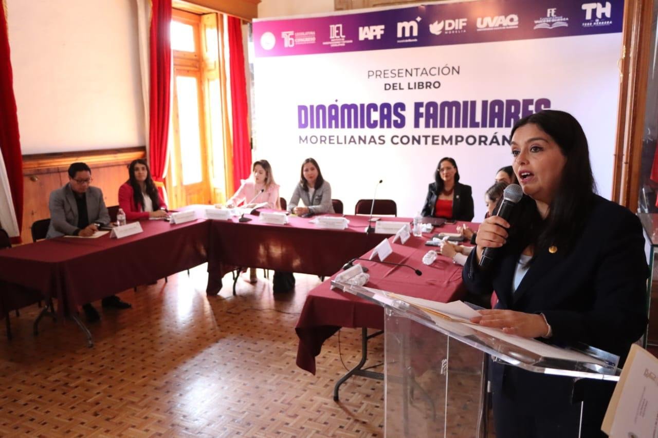 Morelia, Michoacán, 18 de noviembre de 2025.— La Comisión de la Familia del Congreso del Estado, presidida por la diputada Teresita de Jesús Herrera, encabezó la presentación del libro “Dinámicas Familiares Morelianas Contemporáneas”.