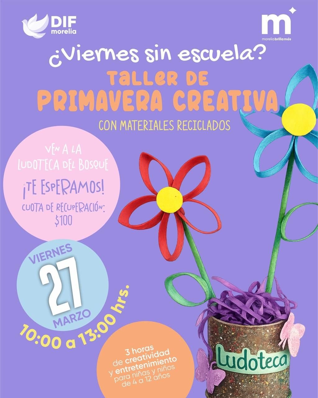 La actividad está dirigida a niñas y niños de 4 a 12 años, quienes podrán crear flores decorativas utilizando materiales reciclados, contribuyendo al desarrollo de habilidades manuales, el fomento de la creatividad y el cuidado del medio ambiente desde edades tempranas, de acuerdo con el DIF Morelia.