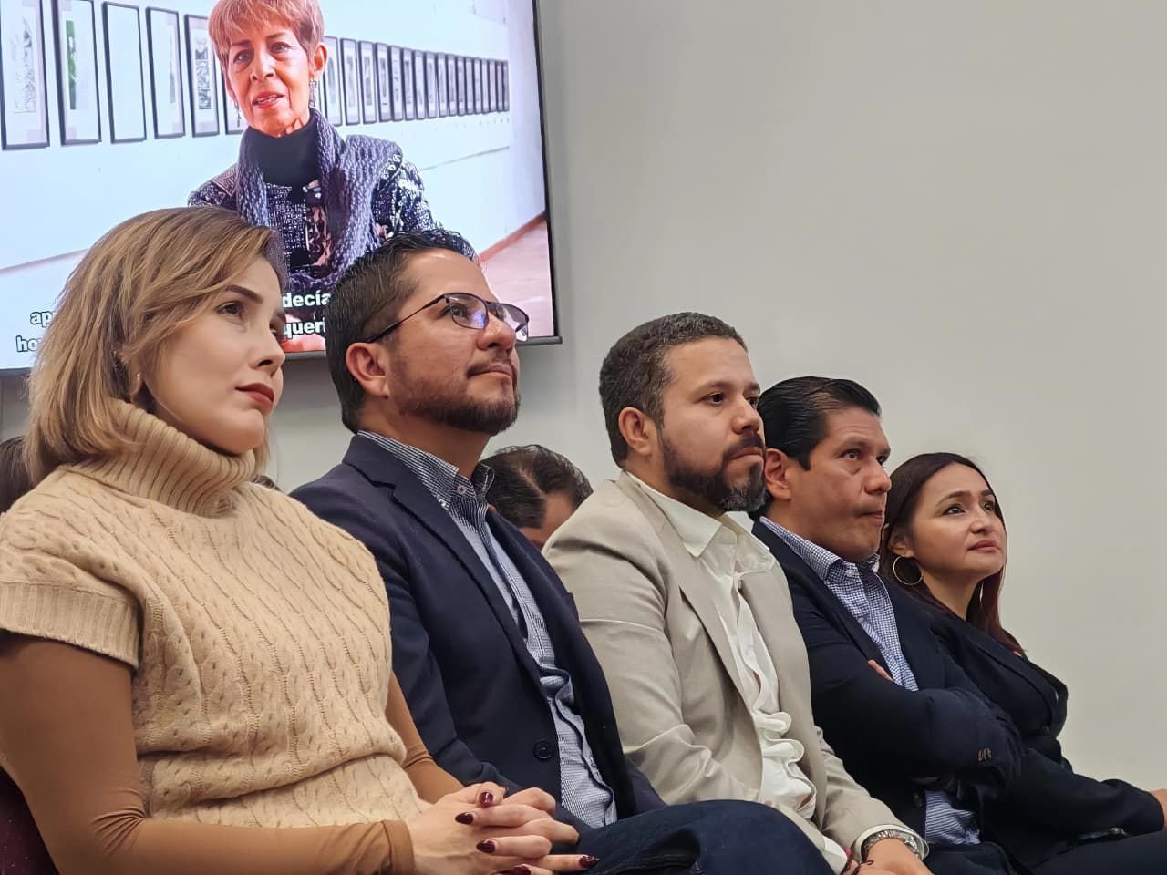 Durante el informe estuvo presente el titular de la Comisión Estatal de los Derechos Humanos (CEDH), Josué Mejía Pineda, quien pidió un minuto de silencio por el fallecimiento de la familia de intérpretes de lengua de señas mexicana.
