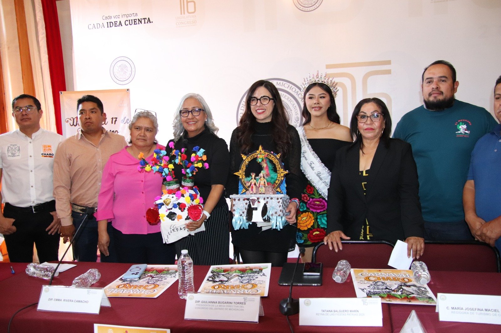 Finalmente, la legisladora invitó a la ciudadanía a asistir al Carnaval de Charo 2026, que se celebrará del 14 al 17 de febrero. El evento contó con la presencia de autoridades y promotores del carnaval, quienes acompañaron a la diputada durante el anuncio.