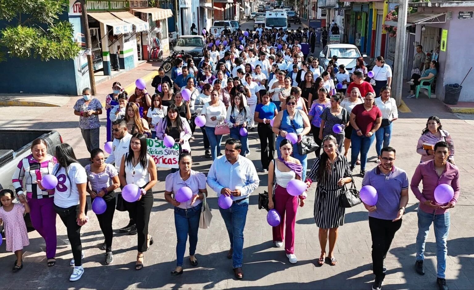 Tuzantla, Michoacán, 8 de marzo de 2026. — El presidente municipal de Tuzantla, Fernando Ocampo Mercado, encabezó la caminata conmemorativa por el Día Internacional de la Mujer (8M), acompañado por el honorable Cuerpo de Regidores, el secretario municipal, directores de las distintas áreas del Ayuntamiento y autoridades educativas.