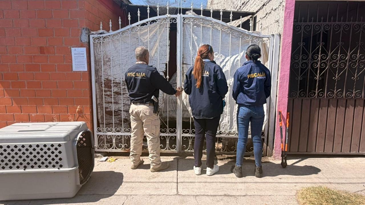 La diligencia fue autorizada por un Juez de Control en atención a una denuncia ciudadana que advertía posibles actos constitutivos del delito de maltrato animal. Personal ministerial, en coordinación con peritos y elementos de la Policía de Investigación, se constituyó en un inmueble ubicado en el fraccionamiento Metrópolis I, donde se localizó al canino en estado de abandono.