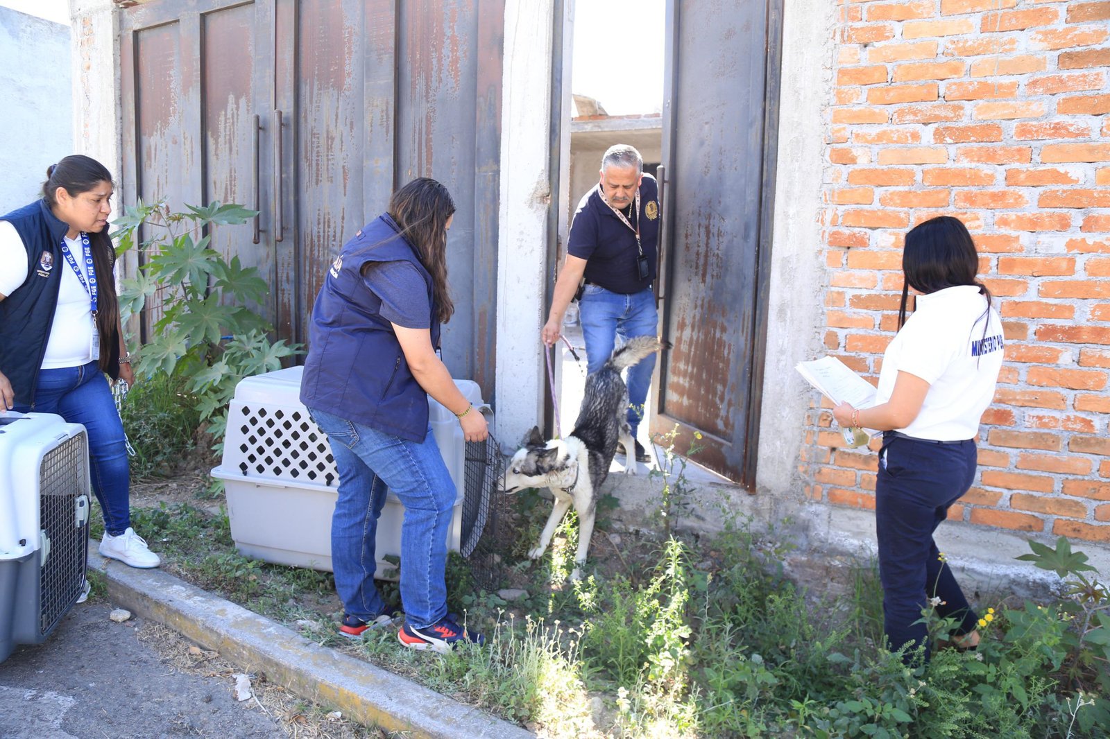 Una vez otorgada la autorización judicial, personal de la Fiscalía ejecutó la diligencia en el domicilio señalado, donde fueron localizados los dos ejemplares caninos en condiciones que comprometían su integridad y bienestar, por lo que se procedió a su aseguramiento.