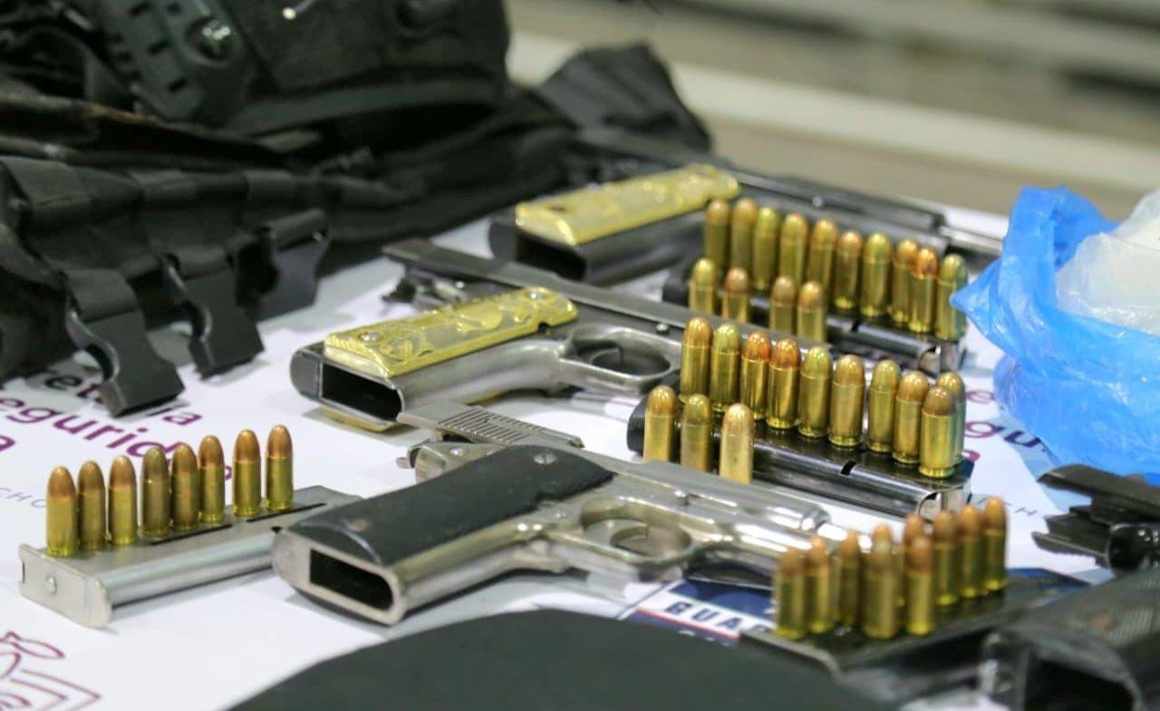- Cuatro armas de fuego tipo escuadra con cargador y cartuchos útiles.