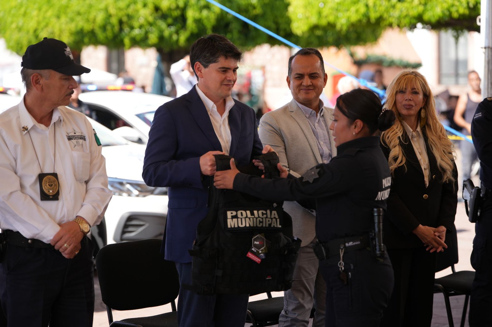 - Vehículos: Se entregaron seis nuevos vehículos que se suman a un lote de 122 patrullas entregadas previamente por el Gobernador Alfredo Ramírez Bedolla a diversos municipios.