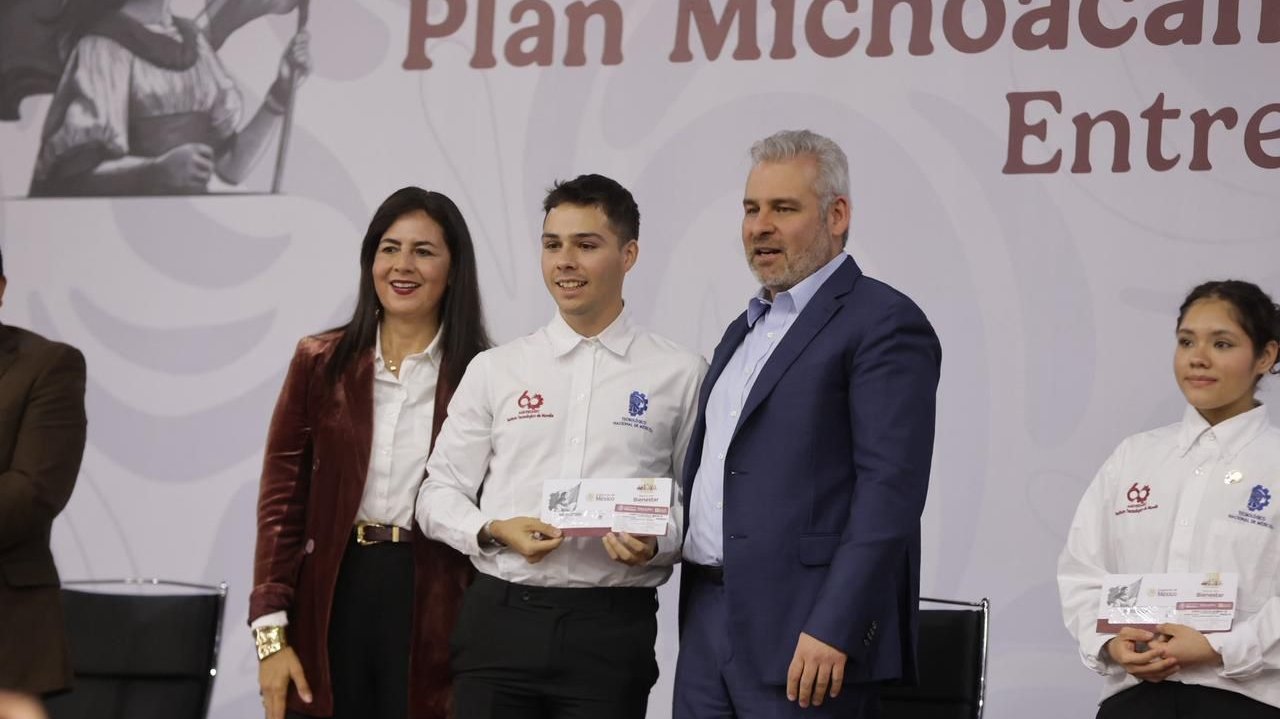 Ante estudiantes del plantel, el mandatario estatal recalcó que se trata de una ayuda universal para estudiantes de instituciones públicas del estado, enmarcada en el Plan Michoacán por la Paz y la Justicia. “Estoy seguro que esta beca les va a ayudar muchísimo”, dijo Ramírez Bedolla, al reconocer los esfuerzos de las familias para que sus hijos continúen estudios.