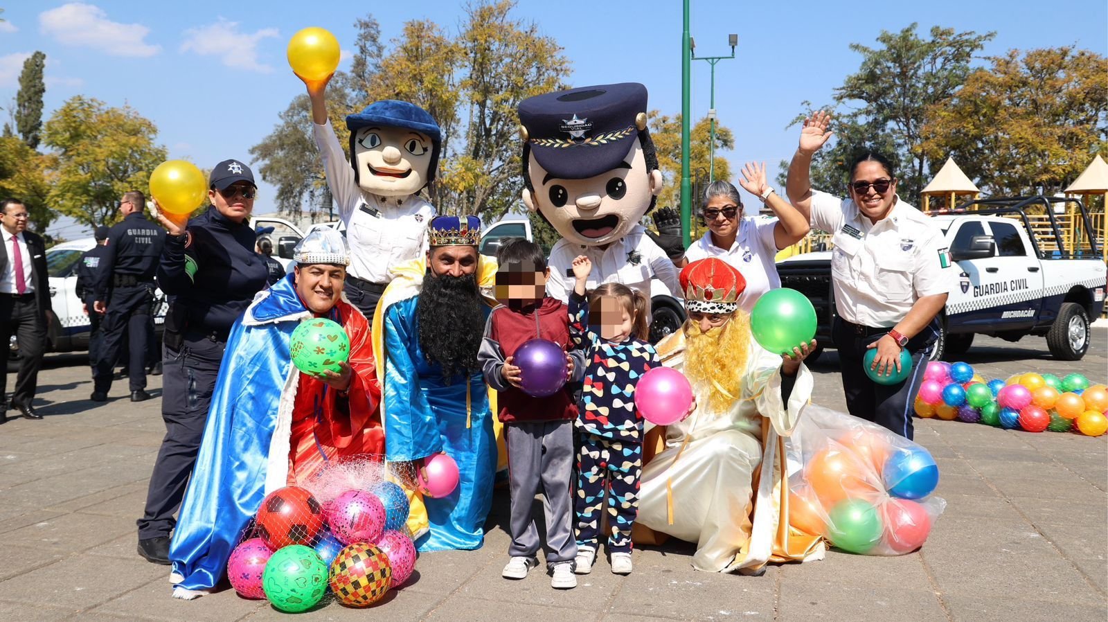 Morelia, Michoacán, 6 de enero de 2026.– Elementos de la Guardia Civil, adscritos a la Secretaría de Seguridad Pública (SSP), implementaron una jornada de proximidad social para acompañar a los Reyes Magos en la distribución de juguetes a niñas y niños en sectores de alta vulnerabilidad. Las actividades se desarrollaron de manera simultánea en municipios como Coalcomán, Coahuayana, Morelia, Pátzcuaro y Erongarícuaro, así como en las demarcaciones que integran las 13 regiones de operación policial en el estado.