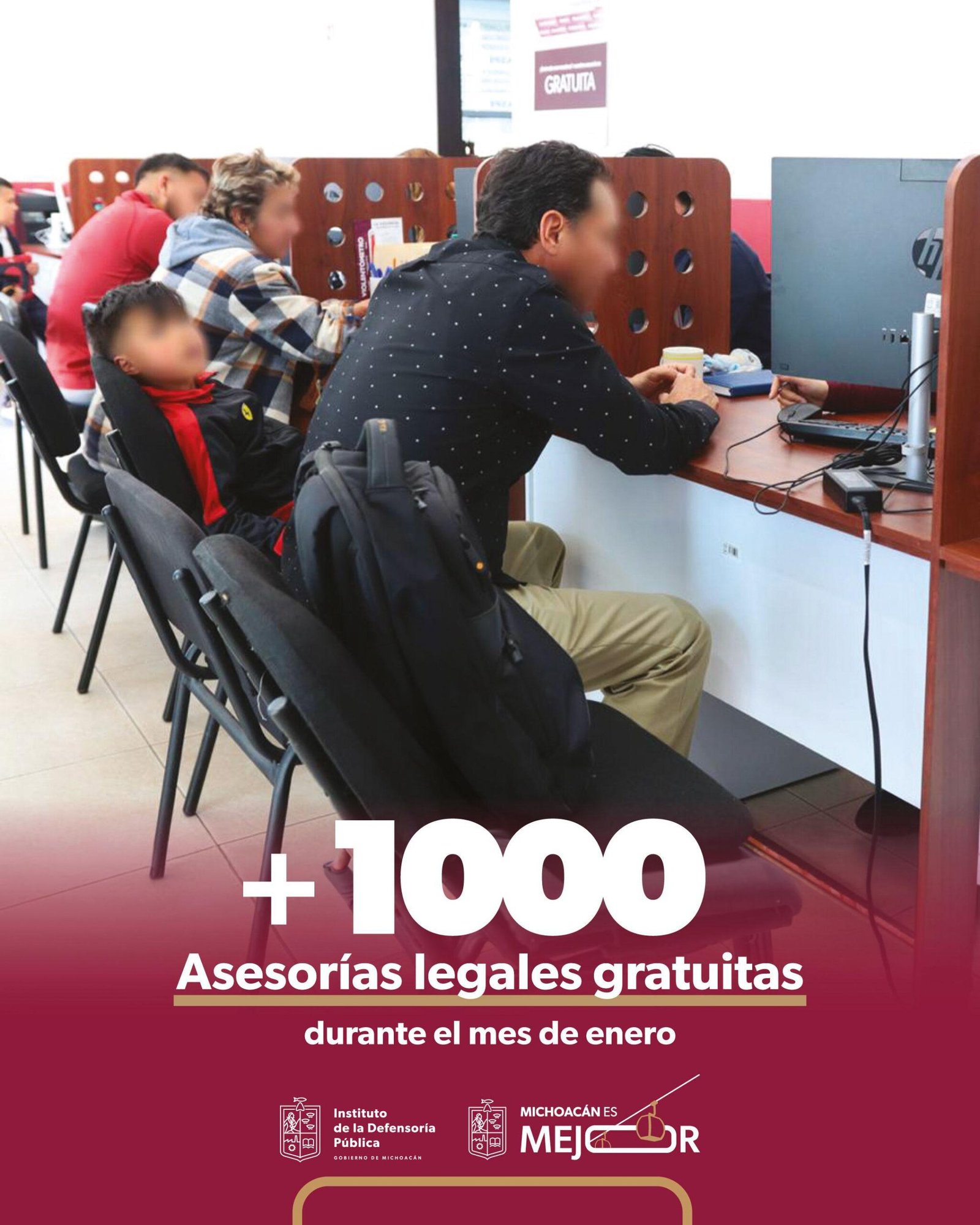 Morelia, Michoacán, 12 de febrero de 2026.– El Instituto de la Defensoría Pública del Estado (IDPEM) brindó asesoría y defensa jurídica gratuita a más de mil personas durante enero, informó su director, Felipe Morales Correa.