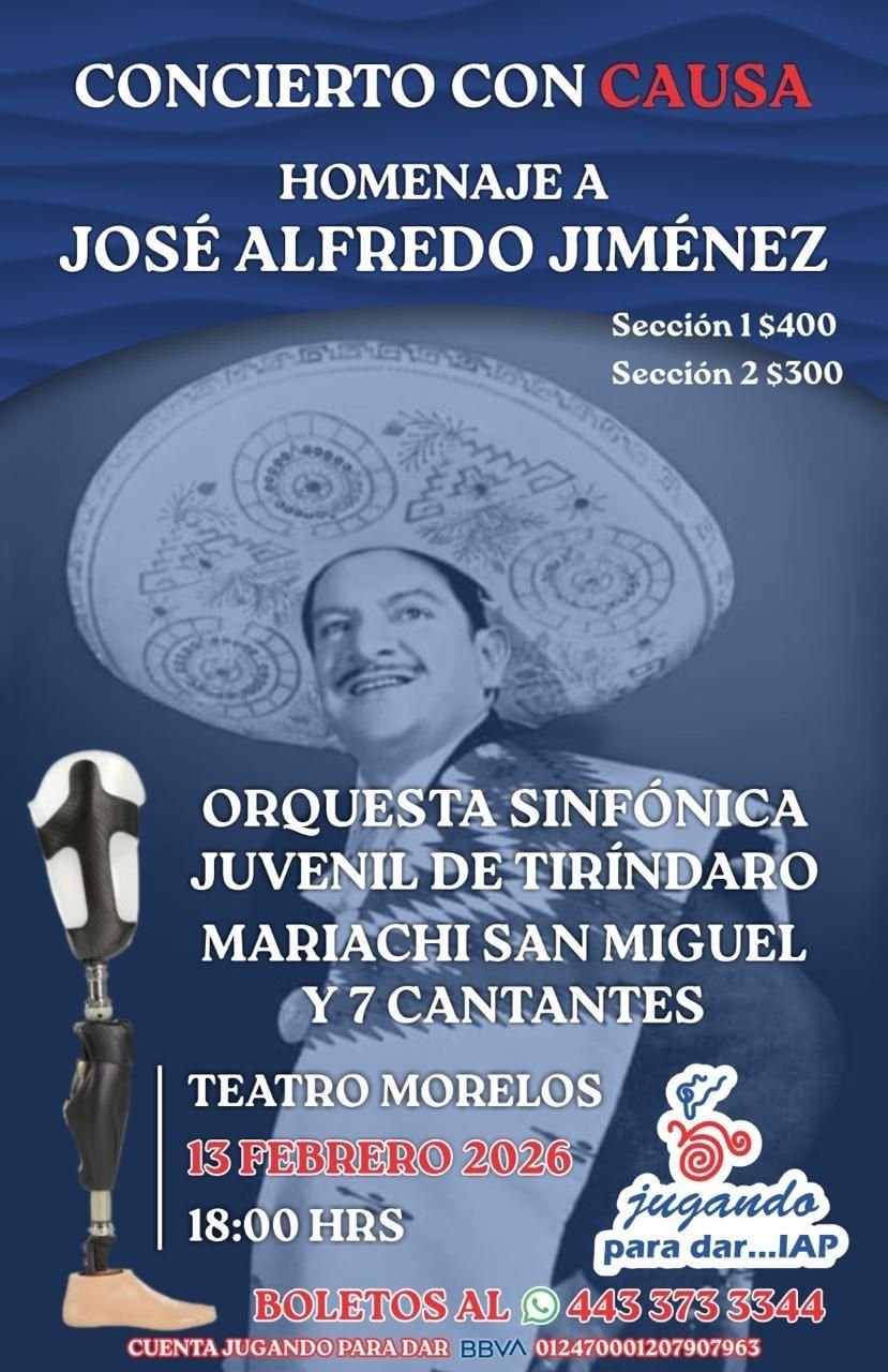 Morelia, Michoacán, 22 de enero de 2026.– La entidad se unirá a las celebraciones por el centenario del natalicio del cantautor José Alfredo Jiménez con un concierto con causa, informaron los organizadores.