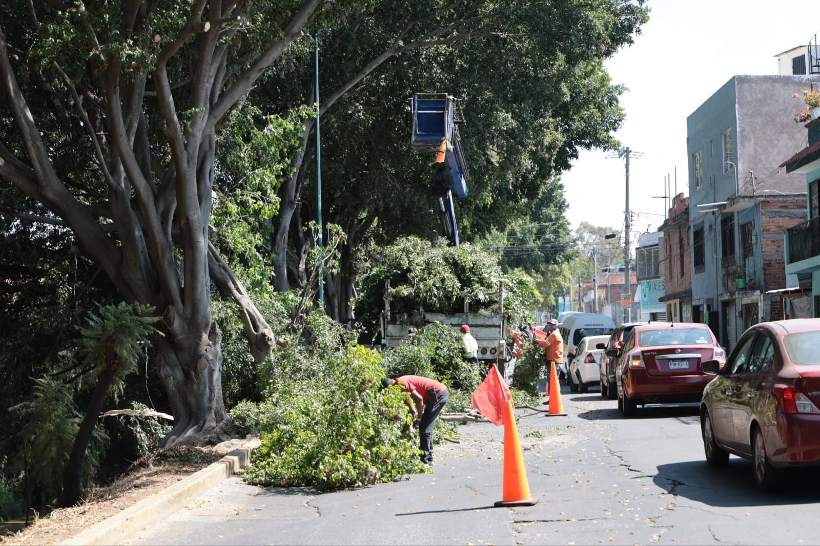 Alfonso Martínez verificó los avances de las brigadas, que además de la poda realizan el retiro de troncos cortados y la limpieza inmediata de la vialidad para eliminar los desechos, garantizando así el tránsito continuo y el orden.