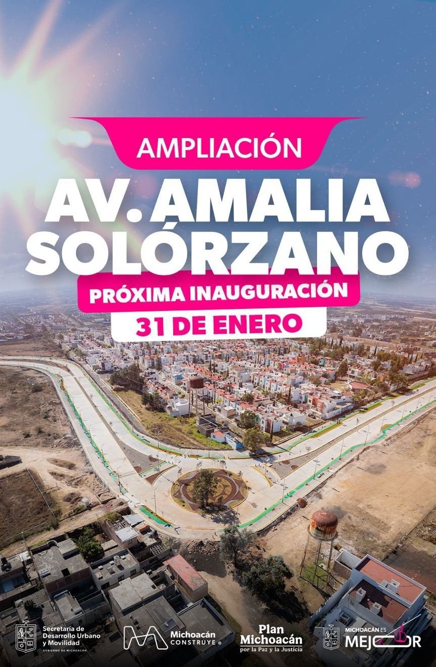 Morelia, Michoacán, 19 de enero de 2026.– La secretaria de Desarrollo Urbano y Movilidad, Gladyz Butanda Macías, informó que la obra de ampliación de la avenida Amalia Solórzano en Morelia quedará concluida e inaugurada el próximo 31 de enero por el gobernador Alfredo Ramírez Bedolla.