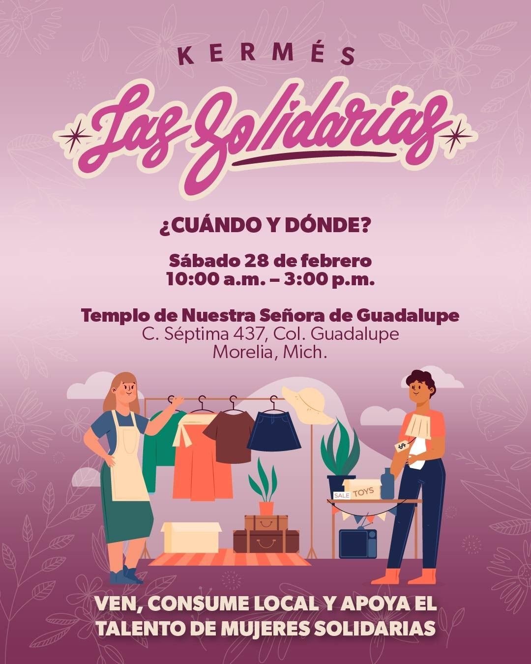 De acuerdo con la Seimujer, la kermés se realizará de las 10:00 a las 15:00 horas en la Parroquia de Guadalupe, ubicada en la colonia Guadalupe. El evento fue organizado y gestionado por las propias participantes como parte de su proceso de fortalecimiento económico y personal.