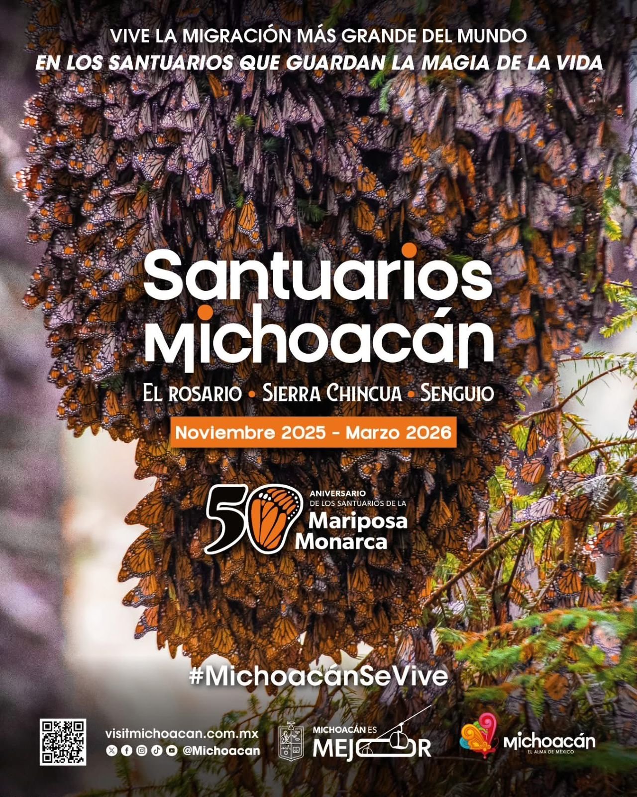 Morelia, Michoacán, 11 de diciembre de 2025.— La Secretaría de Turismo del estado (Sectur), dirigida por Roberto Monroy García, informó que la temporada de la Mariposa Monarca ya comenzó en Michoacán, y el municipio de Senguio invita al público nacional y extranjero a visitar su santuario.