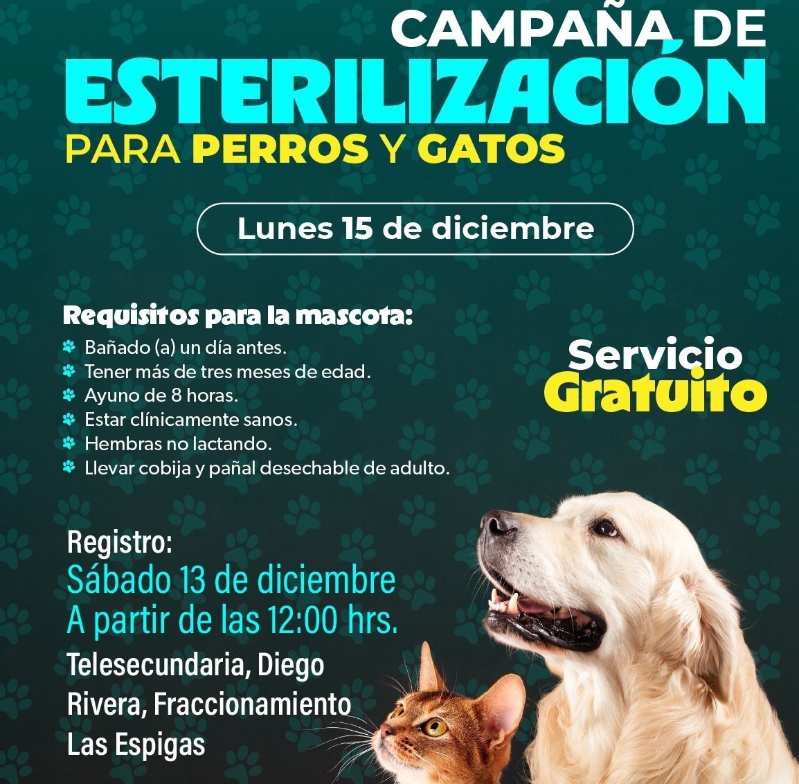 Morelia, Michoacán, 11 de diciembre de 2025.— La Secretaría de Salud de Michoacán (SSM) invita a la población a participar en la jornada gratuita de esterilización de perros y gatos, el próximo lunes 15 de diciembre en el municipio de Tarímbaro, como parte de las acciones de salud pública para fomentar la tenencia responsable y controlar la población animal.
