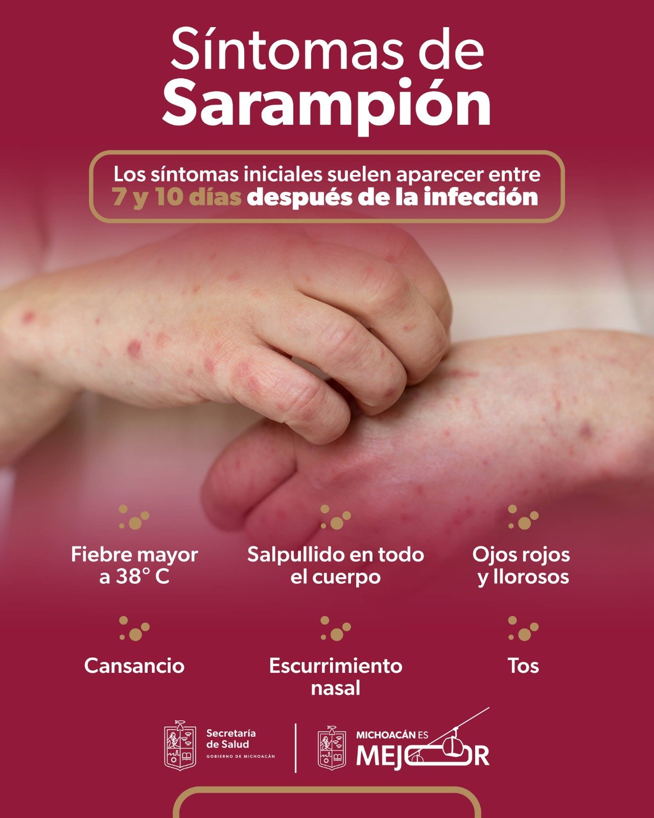 Morelia, Michoacán, 18 de febrero de 2026. La Secretaría de Salud de Michoacán (SSM) hizo un llamado a la población para identificar de manera temprana los síntomas del sarampión y acudir a la unidad de salud más cercana ante cualquier sospecha, como parte de las acciones para fortalecer la vigilancia epidemiológica, informó la dependencia.