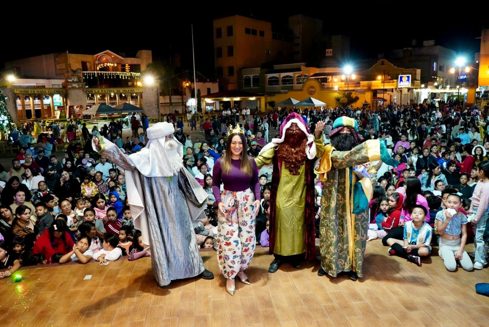 Zacapu, Michoacán, 6 de enero de 2026.– La administración municipal encabezada por la presidenta Mónica Valdez Pulido realizó el festejo del Día de los Reyes Magos en la Plaza Cívica, donde cientos de familias se congregaron para participar en una jornada de actividades recreativas y culturales. El evento central incluyó la puesta en escena de una obra de teatro y la tradicional partida de rosca de Reyes, además de la organización de rifas y la entrega directa de obsequios a las niñas y niños asistentes con el objetivo de fortalecer la convivencia social y los valores familiares.